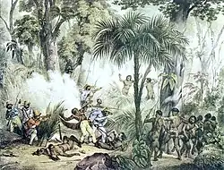 Os massacres de grupos recalcitrantes e hostis, como se disse, foram frequentes, destacando-se entre outros os ocorridos na Guerra Guaranítica, na Confederação dos Tamoios, nas revoltas potiguares e na Guerra dos Bárbaros, apesar de várias ordenações reais e eclesiásticas condenarem os abusos, e mais uma grande população acabou sua vida como escrava, servindo os portugueses em casa, no trabalho e nas milícias.[9][16][17] Depois de a importação de escravos africanos se tornar mais lucrativa, o interesse pelos indígenas como mão-de-obra diminuiu bastante, pois eram considerados rebeldes e preguiçosos. Cessando sua maior utilidade, se tornavam antes de tudo um estorvo para todos.[7][18][19]