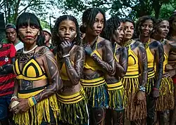 A contagem populacional no Brasil, no quesito étnico, depende da autodeclaração das pessoas. O censo de 2022 do IBGE acusou uma população de 1 694 836 pessoas que se identificavam como indígenas, com 914 746 vivendo em zonas urbanas e 780 090 em zonas rurais.[92] Dos 5 570 municípios brasileiros, apenas 737 não têm nenhuma população autodeclarada indígena.[92] Porém, os números podem ser enganosos. Segundo o Instituto Socioambiental, nas provas-piloto para o Censo de 2010 foram registrados casos em que os indígenas não parecem ter compreendido bem as perguntas, e se identificaram como pardos ou amarelos.[93] Estão divididos em 279 povos, respondendo por cerca de 0,83% da população total do país.[92] O predomínio está na região Norte, com 753 780 pessoas de etnia indígena.[94][5][95] Com uma população original no século XVI estimada de 2 a 5 milhões de pessoas, talvez mais, após registrar um declínio constante até a década de 1980, hoje a população indígena está crescendo, embora algumas etnias não estejam acompanhando esta tendência e se aproximem da extinção. Sete povos tinham, na data do levantamento de 2010, menos de 40 integrantes. Historicamente muitos já foram extintos.[5][95][96][97]