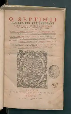 Nascido em Cartago, na província romana da África Proconsular[1], Tertuliano (em latim: Quintus Septimius Florens Tertullianus; c. 160 – c. 220 (60 anos))[2] foi um prolífico autor das primeiras fases do cristianismo, o primeiro a produzir obra literária (corpus) em latim. Foi também um notável apologista cristão e polemista contra a heresia.