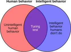 O Teste de Turing não testa diretamente se um computador se comporta de forma inteligente - ele teste somente se um computador se comporta como um humano. Já que o comportamento humano e comportamento inteligente não são exatamente a mesma coisa, o teste de falhar como medida de inteligência de duas formas: