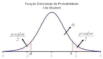 É comum que sejam usados os "pontos de corte" para p-valor 0,1%, 0,5%, 1%, 2% ou 5%, fazendo com que os níveis de confiança sejam, respectivamente, 99,9%, 99,5%, 99%, 98% ou 95%. Caso seja usado o p-valor 5% como "ponto de corte" e a área abaixo da função densidade de probabilidade da distribuição t de Student seja menor do que 5%, pode-se afirmar que a hipótese nula é rejeitada com nível de confiança de 95%.