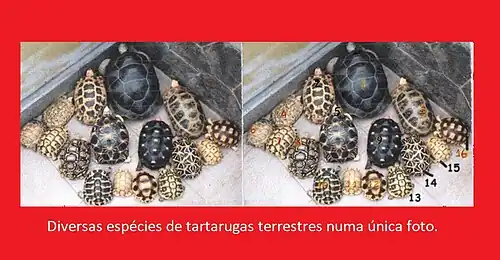 - ↑ Caio A Carbonaro Guerreiro. «Que tipos de tartarugas terrestres existem?». Consultado em 2 de maio de 2023. Cópia arquivada em 2 de maio de 2023