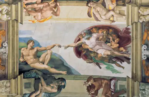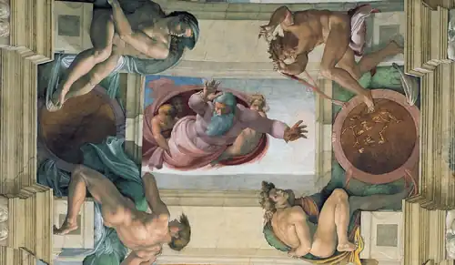 O teto da Capela Sistina é constituído por um extenso afresco, concebido por Michelangelo entre 1508 e 1512. O trabalho, feito a pedido do papa Júlio II, é considerado não só um marco da pintura da Alta Renascença, mas também uma das mais famosas obras da história da arte e um dos maiores tesouros da Santa Sé. A Capela Sistina, localizada no Vaticano, foi construída entre 1477 e 1480, a mando do papa Sisto IV, em homenagem ao qual foi nomeada. No local, acontecem o conclave e outros importantes eventos da Igreja Católica.[2]