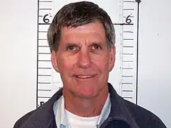 ![]() "Tex" Watson em mugshot do sistema penitenciário da Califórnia | |