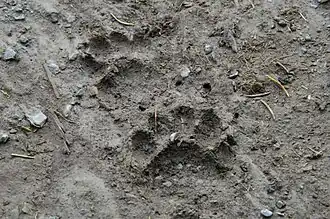 Os indícios de presença são a forma mais fácil de verificar a sua existência num determinado local. A pegada do texugo é constituída por uma grande almofada, 5 pequenas marcas de dedos e pelas marcas das garras alguns centímetros à frente destes.