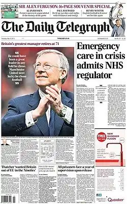 ![]() Capa do The Daily Telegraph em 9 de maio de 2013 | |