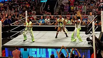(as Sheamus and New Day fall out of the ring) - ↑ «WWE: New Day, New Way (The New Day) - Single by Jim Johnston on iTunes». iTunes. Consultado em 13 de setembro de 2015