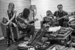 ![]() The Pretty Reckless no backstage em sua turnê no ano de 2017. | |