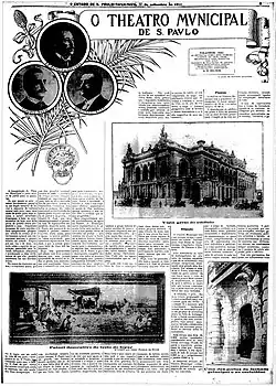 - ↑ O Estado de S. Paulo sobre a inauguração do Theatro Municipal, em 12 de setembro de 1911