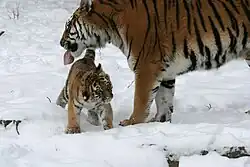 - ↑ «Amur (Siberian) tiger». World Wildlife Fund. Consultado em 9 de julho de 2014. Cópia arquivada em 25 de novembro de 2013