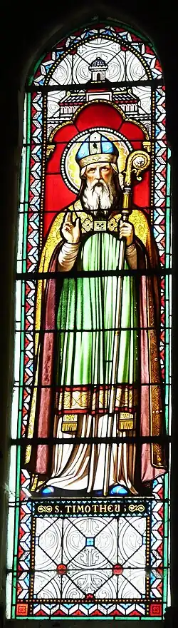 De acordo com uma tradição posterior, Paulo consagrou Timóteo como bispo de Éfeso no ano 65, um cargo que Timóteo teria servido por 15 anos.[carece de fontes] No ano 80 (ou 97, segundo outras fontes), Timóteo tentou impedir uma procissão pagã e, em resposta, os pagãos, furiosos, atacaram-no, arrastaram-no pelas ruas e apedrejaram-no. No século IV, suas relíquias foram transferidas para a Igreja dos Santos Apóstolos em Constantinopla.[carece de fontes]