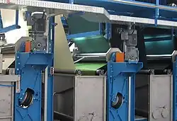 - Processo semi-contínuo: Impregnação do tecido com banho de tingimento realizado por Foulard, após esse processo o tecido fica em repouso por algumas horas para a reação do corante e posterior lavagem. Processo conhecido como ‘pad-batch’.