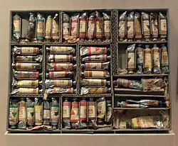 - ↑ Thissen, Coremans, Gettens, (1952). La technique des Primitifs flamands. Études en Conservation (em francês). 1 1ª ed. [S.l.: s.n.]