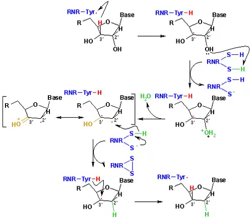 - ↑ JoAnne Stubbe, Daniel G. Nocera, Cyril S. Yee, Michelle C. Y. Chang "Radical Initiation in the Class I Ribonucleotide Reductase: Long-Range Proton-Coupled Electron Transfer?" Chem. Rev., 2003, 103 (6), pp 2167–2202. doi:10.1021/cr020421u