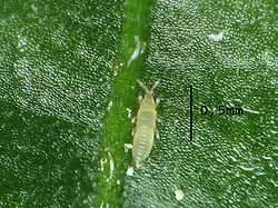 Folha com dano causado por tripes