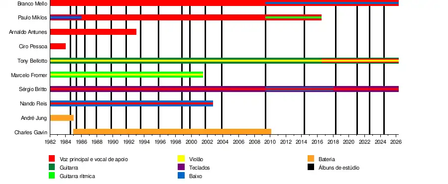 - Branco Mello: voz principal e vocal de apoio (1982–presente); baixo (2009–presente)