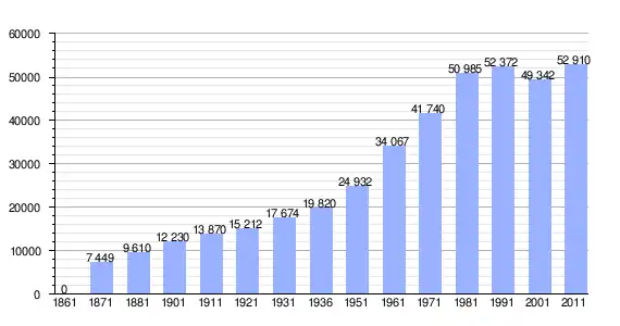 | Variação demográfica do município entre 1861 e 2011[4] |