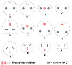 Entre os 14 modelos, são identificados por letras de A a N, segundo a Comissão Eletrotécnica Internacional. Entre eles:[8]