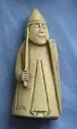 Entretanto os desenhos das peças de Lewis, datados do século XII, não trazem o desenho amplamente difundido na Europa da peça representando uma fortaleza. Este conjunto possui em substituição à Torre, a figura de um soldado empunhando espada e escudo.[16] Wichmann sugere que as peças sejam de origem islandesa e que a Torre teve seu nome árabe transliterado novamente para hroker, que significa bravo soldado ou herói.[17] Esta é uma das evidências que têm sugerido a refutação do conjunto de Lewis como sendo peças de xadrez.[18]