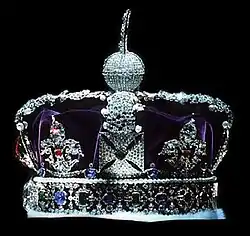 A tradição de abrigar as Joias da Coroa Britânica na Torre de Londres provavelmente data do reinado de Henrique III. A Casa das Joias foi construída especificamente para acomodar a regalia real, incluindo joias, pratos e símbolos da realeza como a coroa, cetro e espada. O tesouro podia ser penhorado pelo monarca na necessidade de arrecadar dinheiro. O tesouro permitia que o soberano tivesse independência da aristocracia, consequentemente sendo muito bem protegido. Foi criada uma posição para "guardião das joias, arsenais e outras coisas", que era bem remunerada; o ocupante do cargo ganhava doze moedas por dia durante o reinado de Eduardo III. A posição cresceu e incluiu outras funções, como comprar joias reais, ouro e prata, e a nomeação de ourives e joalheiros.[138] Os conteúdos da Casa das Joias foram descartados em 1659 durante a Guerra Civil Inglesa junto com as outras propriedades reais. Itens de metal foram enviados para a Casa da Moeda a fim de serem derretidos e reutilizados, enquanto as coroas foram "totalmente quebradas e desfiguradas".[139] Os únicos itens que haviam sobrevivido em 1660 na restauração da monarquia eram uma colher do século XII e três espadas cerimonias. O resto das joias tiveram de ser recriadas. A Casa das Joias foi demolida em 1669[24] e as Joias da Coroa foram transferidas para a Torre de Martin, onde podiam ser vistas pelo público mediante o pagamento de ingresso. Thomas Blood tentou aproveitar isso dois anos depois e roubá-las.[119] Ele e seus cúmplices nocautearam e amarram o guardião da Casa das Joias; apesar de terem conseguido tocar na Coroa Imperial do Estado, no Centro e na Orbe, eles foram frustrados quando o filho do guardião apareceu de surpresa e soou o alarme.[139][140] As Joias da Coroa estão atualmente guardadas no Quartel de Waterloo.[41]