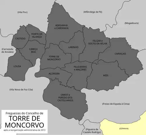 O município de Torre de Moncorvo está dividido em 13 freguesias: