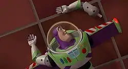 - Tim Allen como Buzz Lightyear,[34] uma figura de ação de patrulheiro espacial com diversos recursos modernos que acaba se tornando o novo brinquedo favorito de Andy, para grande desgosto de Woody.[38] No Brasil, Guilherme Briggs.[39]