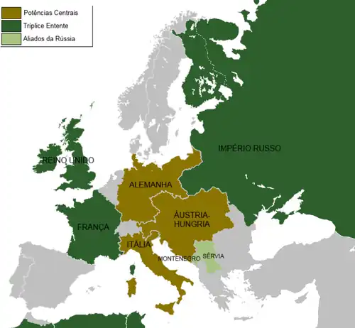 Em verde, a Tríplice Entente.