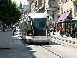 Trata-se de um híbrido entre o tranvia e o trólebus, que circula sobre pneumáticos pela calçada normal, mas guiado por um carril central embutido no pavimento.