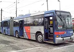 O trólebus (português brasileiro) ou troleicarro (português europeu) (em inglês: trolley bus), também conhecido como troleibus ou trólei, é um ônibus (autocarro) elétrico, alimentado por uma catenária de dois cabos superiores a partir da qual recebe a energia elétrica mediante duas hastes (alavancas ou varas).[1] O trólebus não faz uso de vias especiais ou carris (trilhos) na calçada, pelo que é um sistema mais flexível. Conta com pneus de borracha em vez de rodas de aço nos carris, como os tranvias (elétricos).