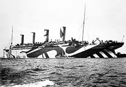 O conflito criou uma época difícil para os transatlânticos. Alguns deles, como o Mauretania, Aquitania, Britannic e France foram transformados em navios-hospital.[50][51][52][53] Outros se tornaram transportes de tropas, enquanto alguns, como o Kaiser Wilhelm der Grosse, participaram da guerra como cruzadores auxiliares.[54] O uso deles como transporte de tropas era muito popular devido ao seu grande tamanho. Os que foram convertidos em navios de tropa foram pintados em camuflagem disruptuva para reduzir o risco de serem torpedeados por submarinos inimigos.[55]