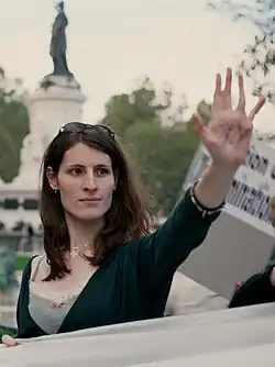 July Schultz, uma mulher trans, na França, em 2005, num evento pelos direitos das pessoas trans e Intersexo.