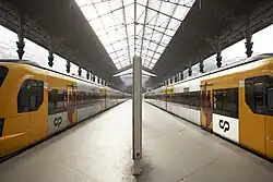 Figura 7. Duas automotoras UME3400, na Estação de São Bento, no Porto.