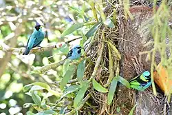 Algumas espécies são territoriais, enquanto que outras constroem seus ninhos próximos. Há pouca informação sobre os hábitos reprodutivos destas aves traupídeas. Os machos mostram suas mais brilhantes penas para as parceiras em potencial, a fim de cortejá-las; exibem também a machos rivais, com o intuito de intimidá-los.