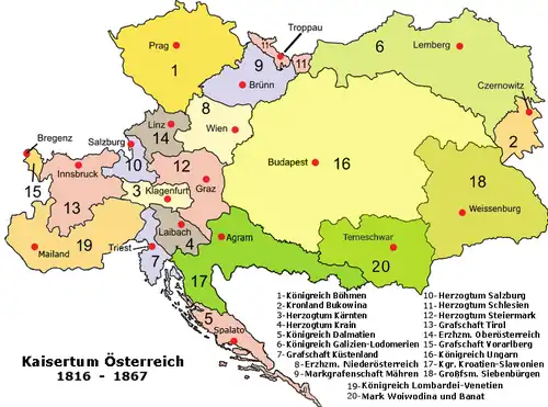 Em 1866, durante as incursões de Giuseppe Garibaldi, a Áustria perde o Reino Lombardo-Vêneto para o Reino de Itália. Garibaldi também tentou anexar o Tirol Italiano, mas não obteve sucesso. Na Batalha de Bezzeca, as tropas italianas são expulsas pelos soldados tiroleses que por pouco não capturam Garibaldi (mais tarde o acontecimento será indicado como sendo o Obbedisco ao rei italiano).