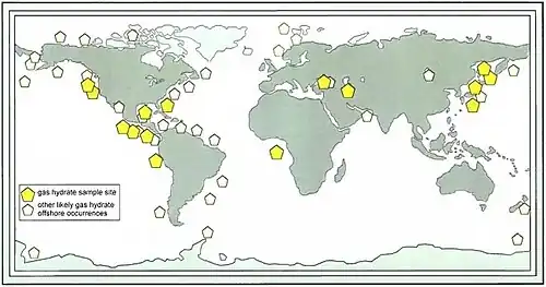 - ↑ WoodsHole.er.usgs.gov Arquivado em 18 de fevereiro de 2012, no Wayback Machine. (informação sobre a aparição de hidratos).