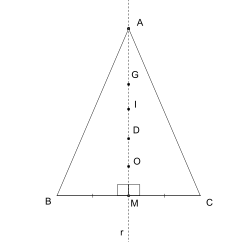 Logo, em todo triângulo isósceles, o baricentro, o incentro, o circuncentro e o ortocentro são colineares.
