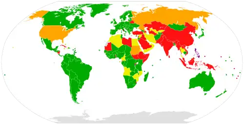Em janeiro de 2012, os seguintes 120 países haviam ratificado ou acedido ao estatuto de países membros do TPI:[39]