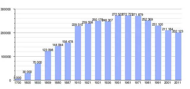| Variação demográfica do município entre 1861 e 2011[3] |
