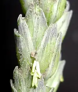 O trigo (Triticum spp.)[1] é a gramínea cultivada em todo o mundo.[2] Mundialmente, é a segunda maior cultura de cereais, sendo a primeira o milho e a terceira o arroz.[3] O grão de trigo é um alimento básico usado para fazer farinha e, com esta, o pão, na alimentação dos animais domésticos e como ingrediente na fabricação de cerveja. O trigo é também plantado estritamente como forragem para animais domésticos, como a palha.