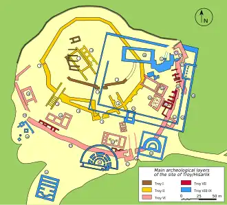 Nos anos 1870 o arqueólogo alemão Heinrich Schliemann escavou a área. As escavações revelaram várias cidades construídas em sucessão a cada outra. Uma das cidades (Troia VII) é frequentemente identificada com a Troia homérica. Enquanto uma identidade é disputada, o sítio é sucessivamente identificado com a cidade chamada Wilusa em textos hititas; Ilion (grafada originalmente como Ϝιλιον, Wilion, com a letra grega Ϝ) é tida como a versão grega daquele nome.