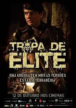 Tropa de Elite, amplamente conhecido como Tropa de Elite - Missão Dada é Missão Cumprida,[5][6] é um filme policial brasileiro de 2007, do gênero drama e policial, dirigido por José Padilha, que também escreveu seu roteiro, com Bráulio Mantovani e Rodrigo Pimentel, e produziu com Marcos Prado. Tem como tema a violência urbana na cidade brasileira do Rio de Janeiro junto com a ajuda do Batalhão de Operações Policiais Especiais (BOPE) e da Polícia Militar do Estado do Rio de Janeiro. O filme é baseado elementos presentes no livro Elite da Tropa, de André Batista e Rodrigo Pimentel, em parceria com Luiz Eduardo Soares. É estrelado por Wagner Moura, André Ramiro, Caio Junqueira, Milhem Cortaz, Fernanda Machado, André Di Mauro,[2] Paulo Vilela, Fernanda de Freitas, Maria Ribeiro e Fábio Lago.