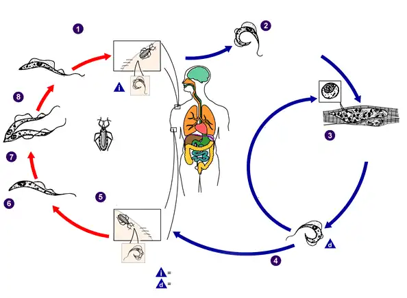 - ↑ «DPDx – Trypanosomiasis, American. Fact Sheet» (em inglês). Centers for Disease Control (CDC). Consultado em 6 de julho de 2014