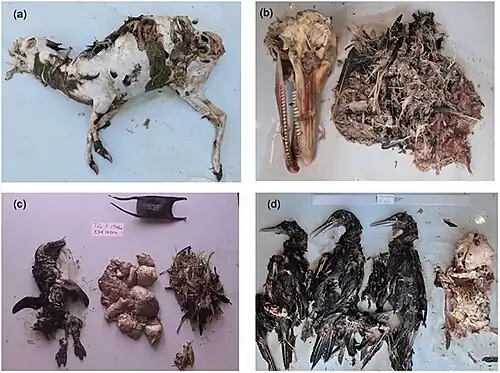 Lixo é frequentemente recuperado do estômago de tubarões capturados em portos e enseadas de rios, onde é comum o despejo de entulho na água[13].