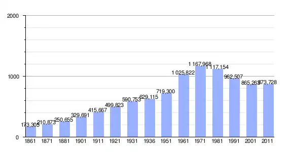 | Variação demográfica do município entre 1861 e 2011 |