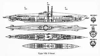 - ↑ Uboat.net. «Type VIIC» (em inglês). Consultado em 28 de janeiro de 2014