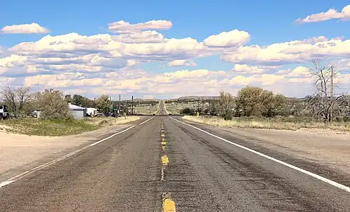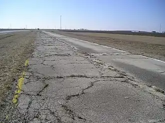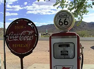 Uma sobra de um marcador de direito de passagem original serve como lembrança dos primeiros dias da construção da estrada. Isto fez parte da construção de 1927 do US 66