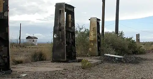 Whiting Brothers, um antigo posto de gasolina, o local foi danificado pelo fogo