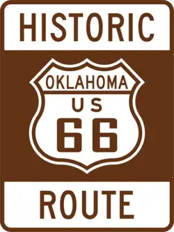 A auto-estrada cobria 376 milhas (605km)[49] em Oklahoma. Hoje, é marcada pela I-40 a oeste da Oklahoma City, e SH-66 a leste de Oklahoma. Depois de entrar em Texola, o US 66 passou por Sayre, Elk City e Clinton antes de entrar em Oklahoma City.[49] Para além de Oklahoma City, a auto-estrada passou por Edmond a caminho de Tulsa. Passando por lá, os US 66 passaram pelo nordeste de Oklahoma antes de entrarem no Kansas, onde percorreram apenas 21,2km (13,2 milhas).[50] Apenas três cidades estão localizadas na rota do Kansas: Galena, Riverton e Baxter Springs.