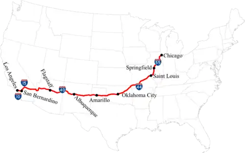 A Rota 66 (em inglês: U.S. Route 66) é uma rodovianorte-americana do U.S. Highway System.Também é a estrada mais famosa do mundo. Foi estabelecida em 11 de novembro de 1926. Iniciava em Chicago, Illinois, passava pelos estados de Missouri, Kansas, Oklahoma, Texas, Novo México, Arizona e terminava na cidade de Santa Mónica. Com a construção de novas vias interestaduais, o trânsito da rodovia foi desviado, com isso o dinheiro que os viajantes deixavam no comércio local desapareceu, fazendo com que algumas cidades sofressem uma emigração massiva. Foram tempos difíceis, até que surgiu a ideia de convencer as pessoas a relembrarem do sentimento de liberdade idealizado pelos jovens americanos das décadas de 50 e 60, que em suas motos Harley Davidson e Indian, aventuravam-se pelas estradas em busca das praias do Pacífico, deixando de lado os costumes conservadores da costa leste dos Estados Unidos, à procura da ensolarada e liberal Califórnia.[2]