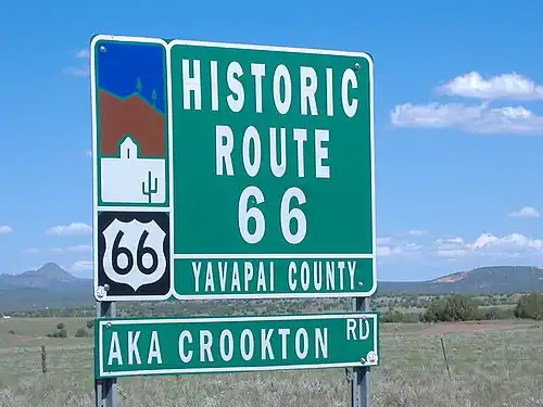 No Arizona, a auto-estrada cobria originalmente 401 milhas (645km) no estado. Ao longo de grande parte do caminho, os EUA 66 paralelos à I-40. Entrou pelo desfiladeiro de Topock Gorge, passando por Oatman ao longo do caminho para Kingman.[44] Entre Kingman e Seligman, a rota ainda está assinada como SR 66. Notavelmente, apenas entre Seligman e Flagstaff, Williams foi o último ponto do US 66 a ser contornado por uma Interestadual. A rota também passou pela comunidade outrora incorporada de Winona. Holbrook contém um dos dois motéis Wigwam Motels sobreviventes na rota.[45]